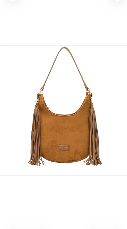 Every Other Medium Scoop Top Tassel Bag - Tan