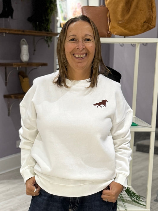 Eadie Relaxed Sweatshirt - Off White, Horse Print