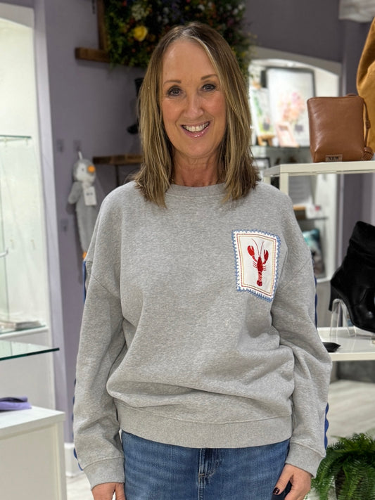 Eadie Relaxed Sweatshirt - Grey Marl, Lobster
