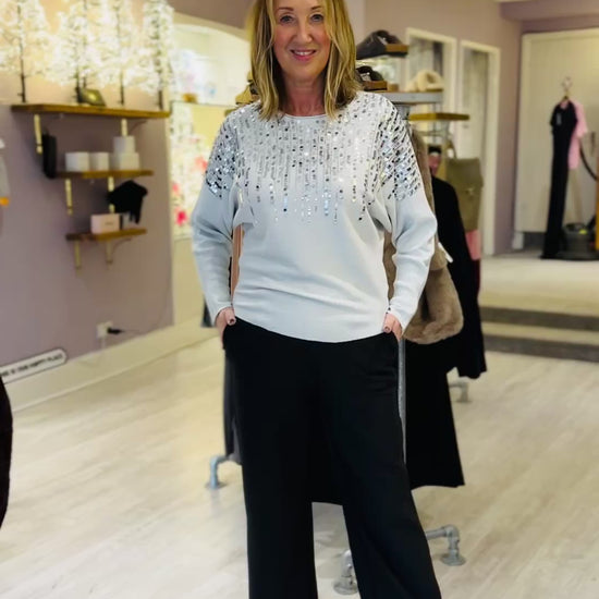 Featuring coordinated sequins on the front and sleeves, it catches the light beautifully without feeling overdone. The relaxed batwing silhouette offers a flattering fit that suits every body shape.