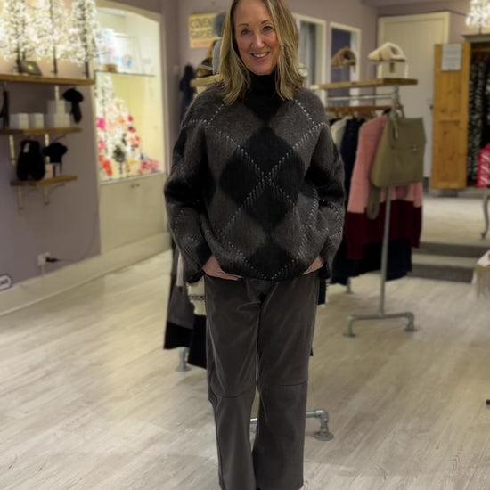 Step up your knitwear game with our Argyle Funnel-Neck Jumper, where timeless pattern meets modern silhouette. Crafted in a soft, breathable knit, this standout piece features: