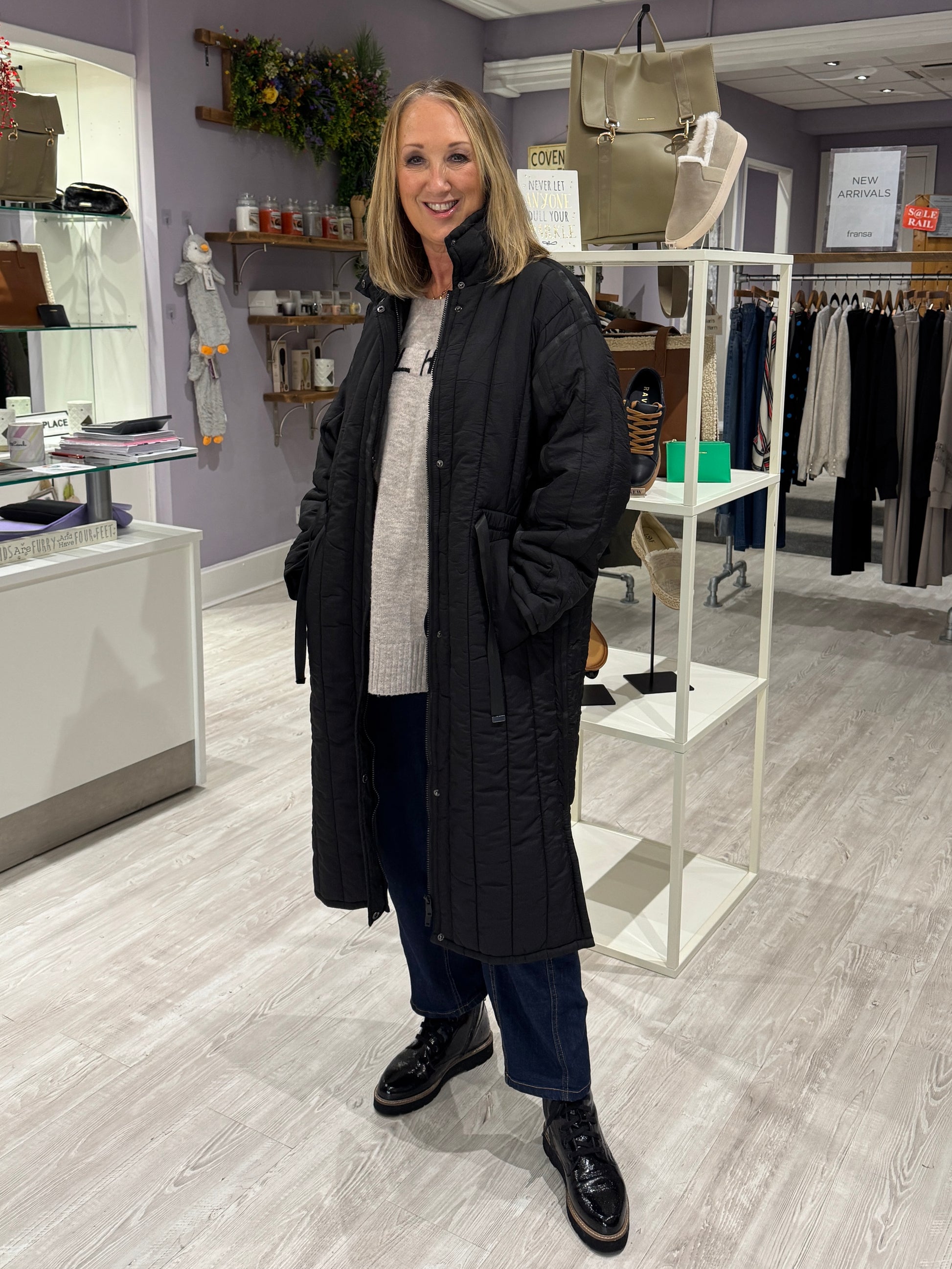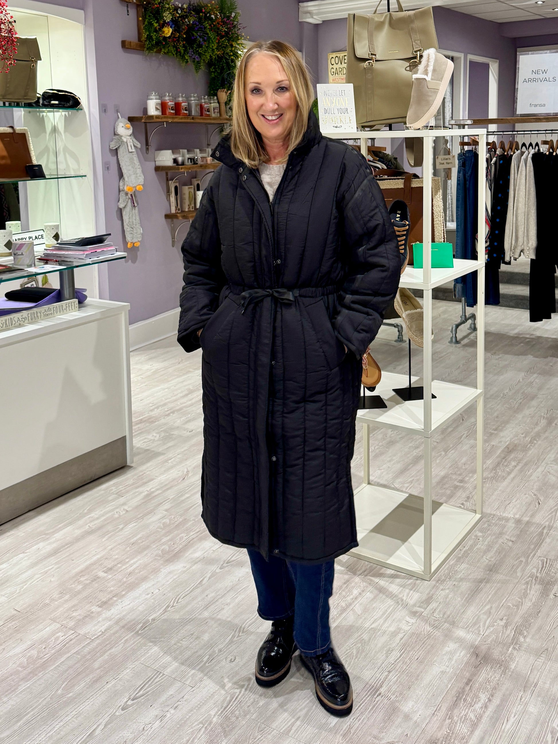 Our soft touch, lightweight, quilted coat by Fransa looks super stylish worn both open or closed.