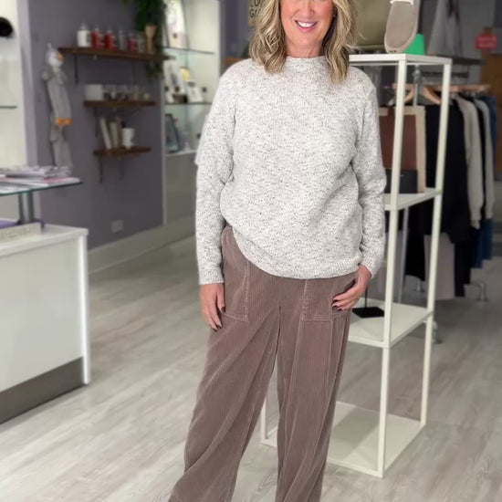 This women’s knitted sweater features a relaxed fit and mock neck for comfort and modern style. Long sleeves and ribbed edges enhance its classic silhouette, making it an ideal choice for daily wear or layering in cooler months.