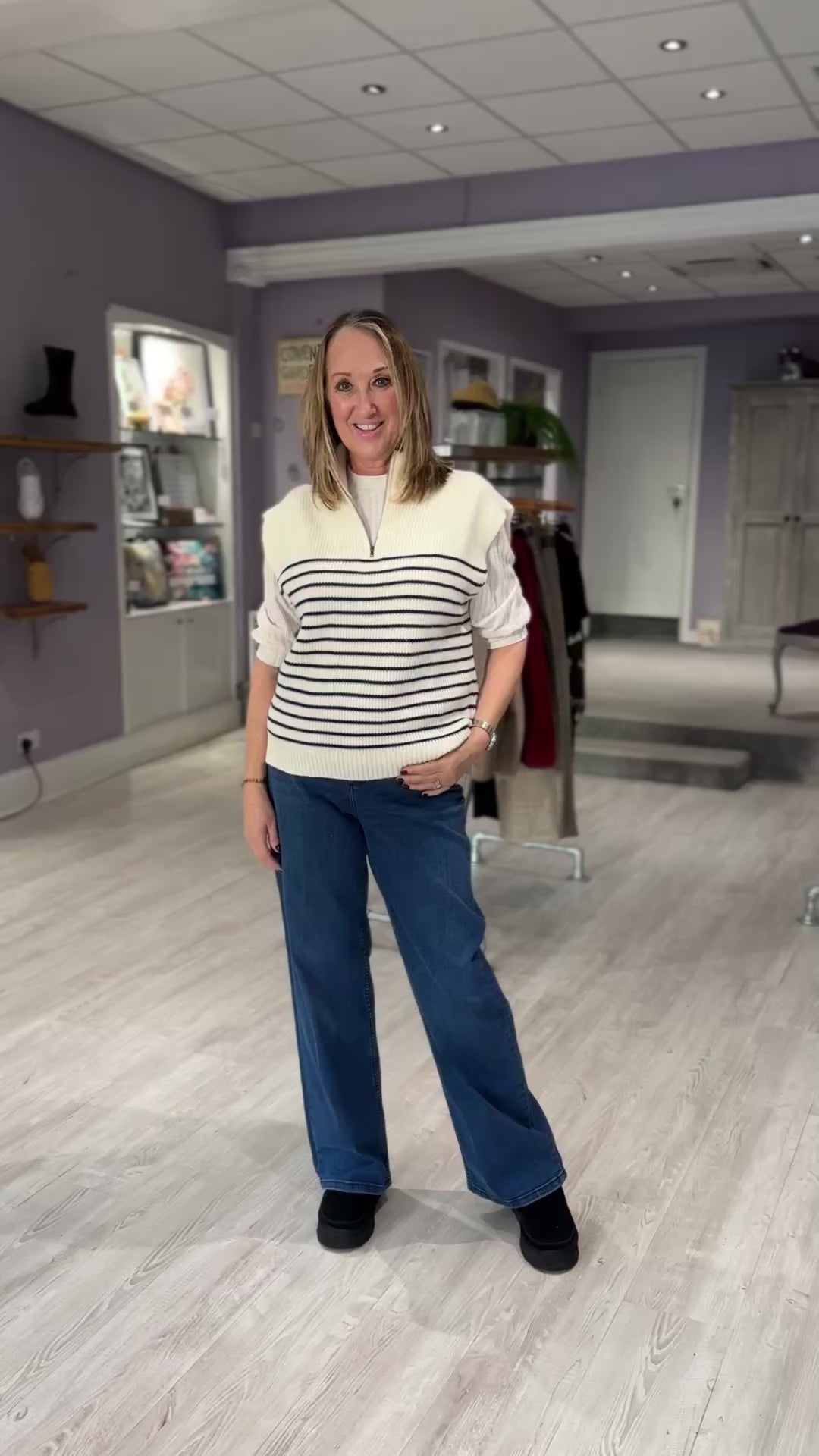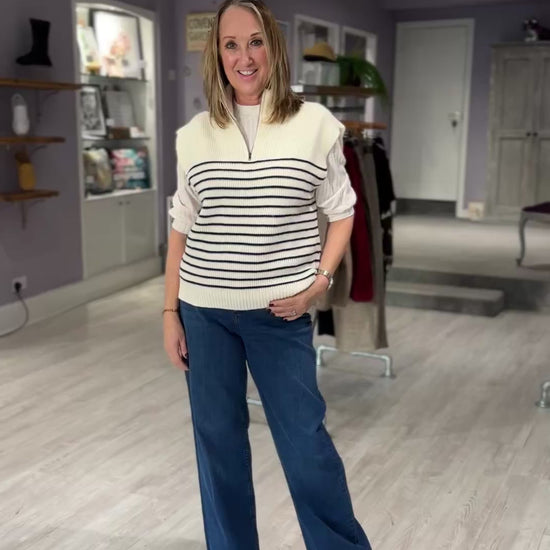 Refresh your denim collection with these mid blue jeans, designed with a flattering high-waisted fit, slim shape through the waist and hips, and a stylish wide leg for a modern silhouette. Effortlessly versatile, they’re perfect for everyday wear and easy to dress up or down.