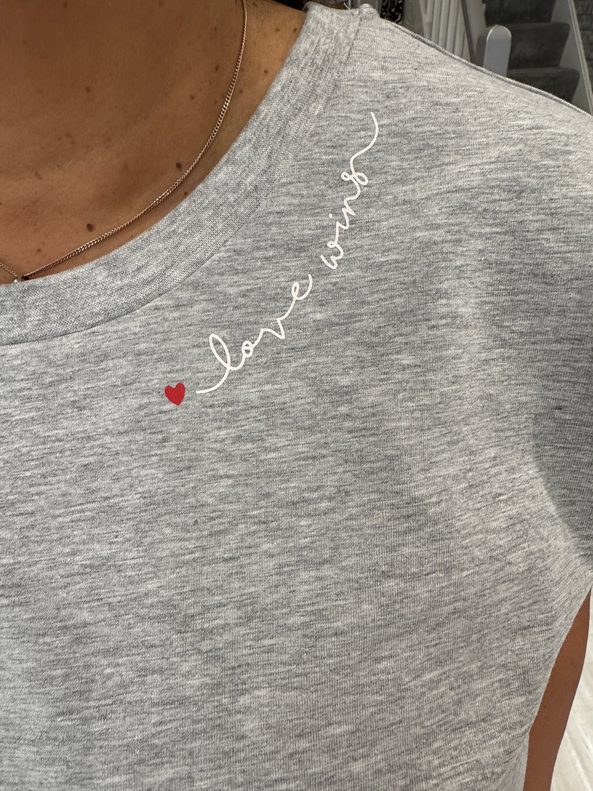 A fabulous t-shirt for the new season. This t-shirt is crafted from a super soft material and features a round neck, short sleeves and a small red heart with the “love wins” slogan. A perfect t-shirt to wear on its own or under a blazer.