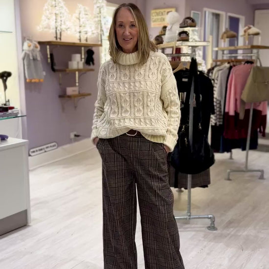 Stay snug in our chunky roll-neck cable knit! With its textured design and all-over cable pattern, this jumper brings major winter vibes while keeping you effortlessly stylish.