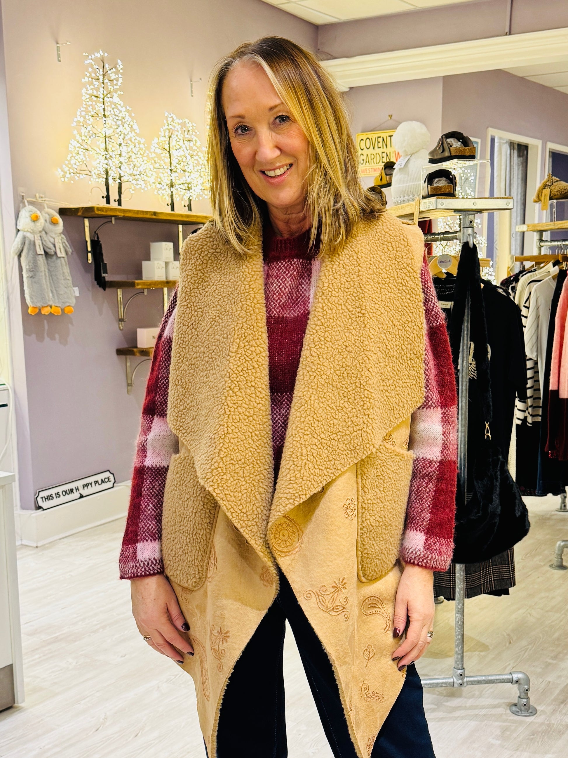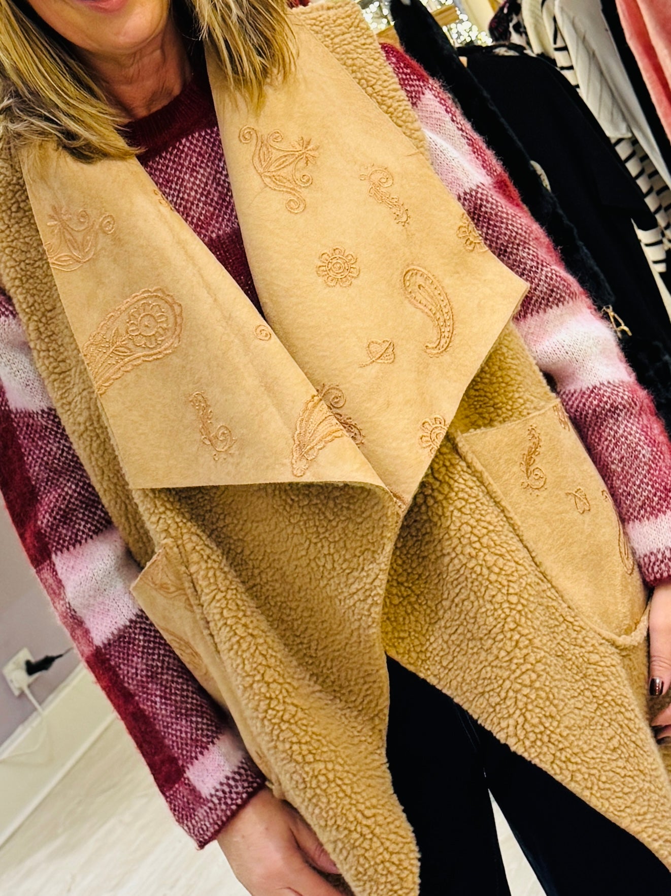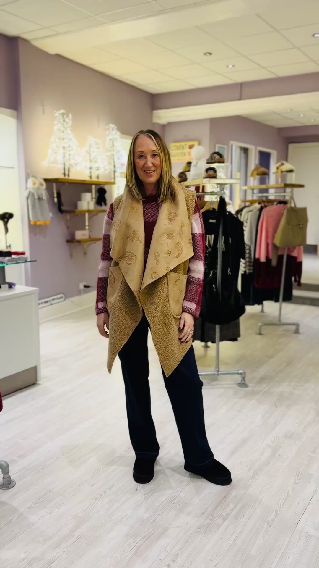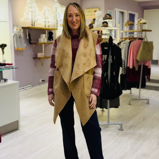 Meet the gilet that does everything. One side: chic suede with a gorgeous paisley print. Flip it: cosy teddy softness. Complete with handy pockets and a stylish waterfall drape, it’s your new go-to for any outfit, any day. One Size to fit up to 16/18.