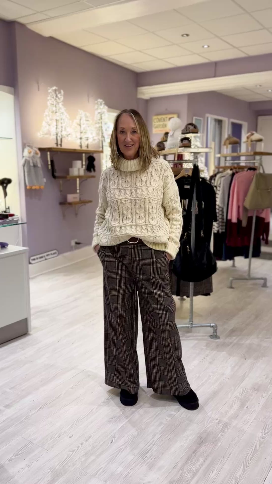 Step into effortless style with our Wide-Leg Check Trousers, designed for those who want comfort and a polished look. One Size to fit up to 16
