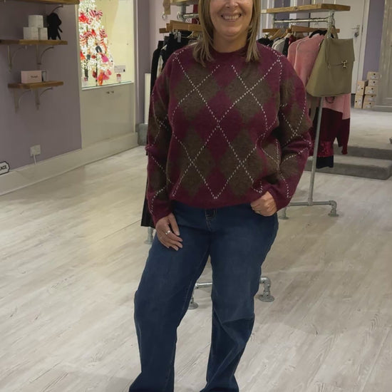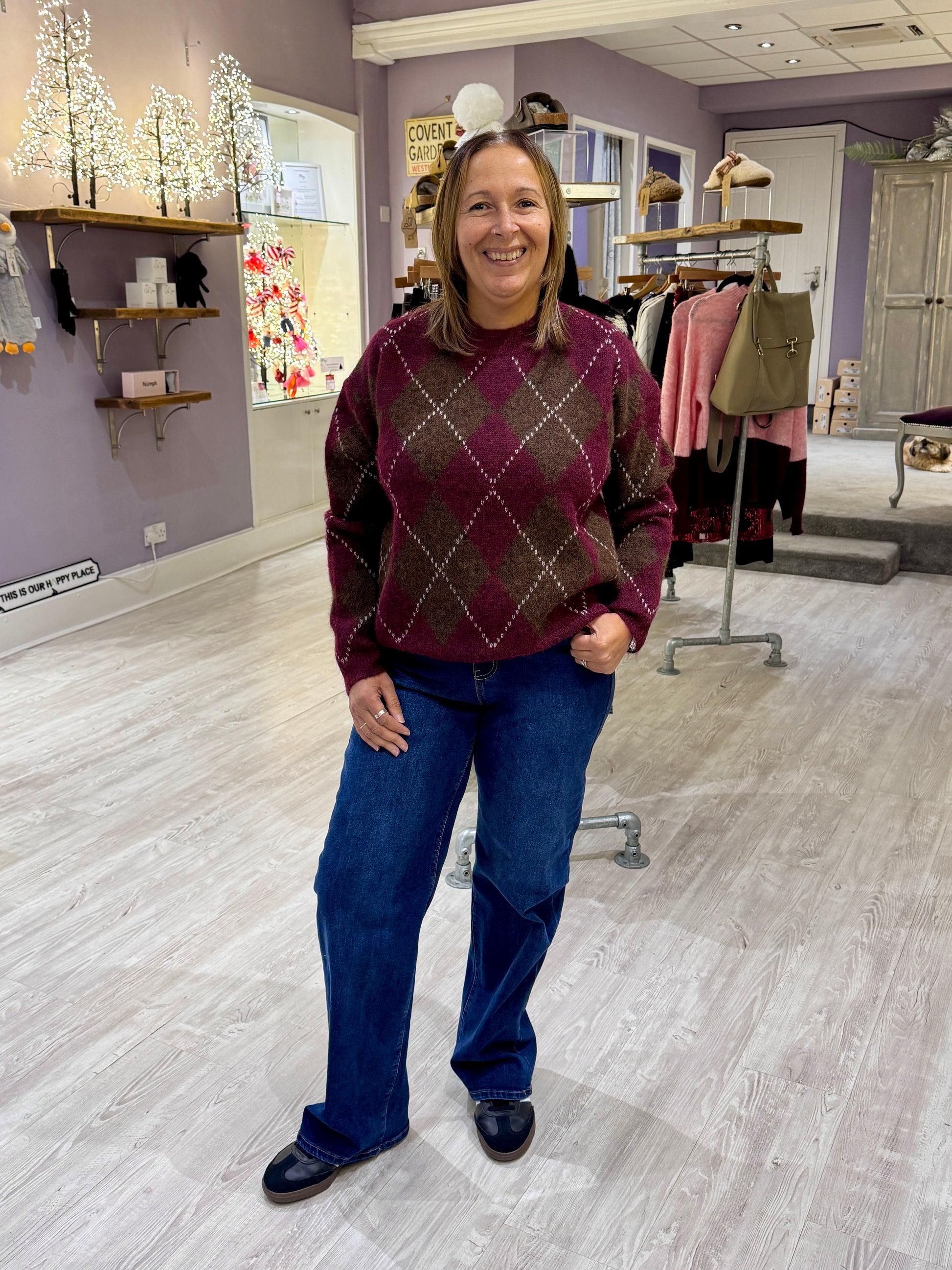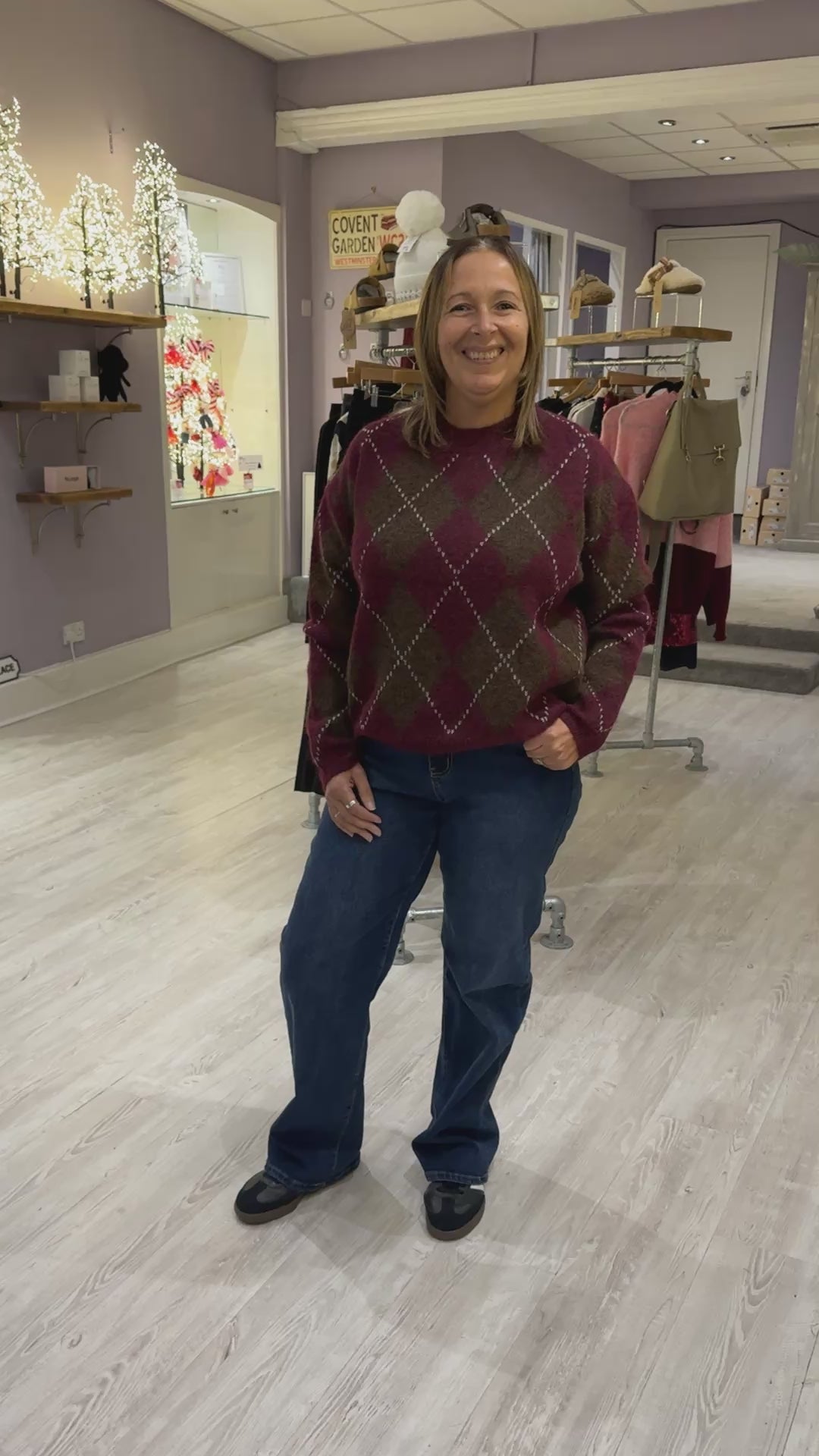 Our On-Trend Argyle Jumper takes the classic diamond knit and gives it a fresh, modern reboot. With bold colours, clean lines, and an irresistibly soft feel, it’s the perfect blend of style and contemporary cool. Can be dressed up or down. One size to fit upto 14