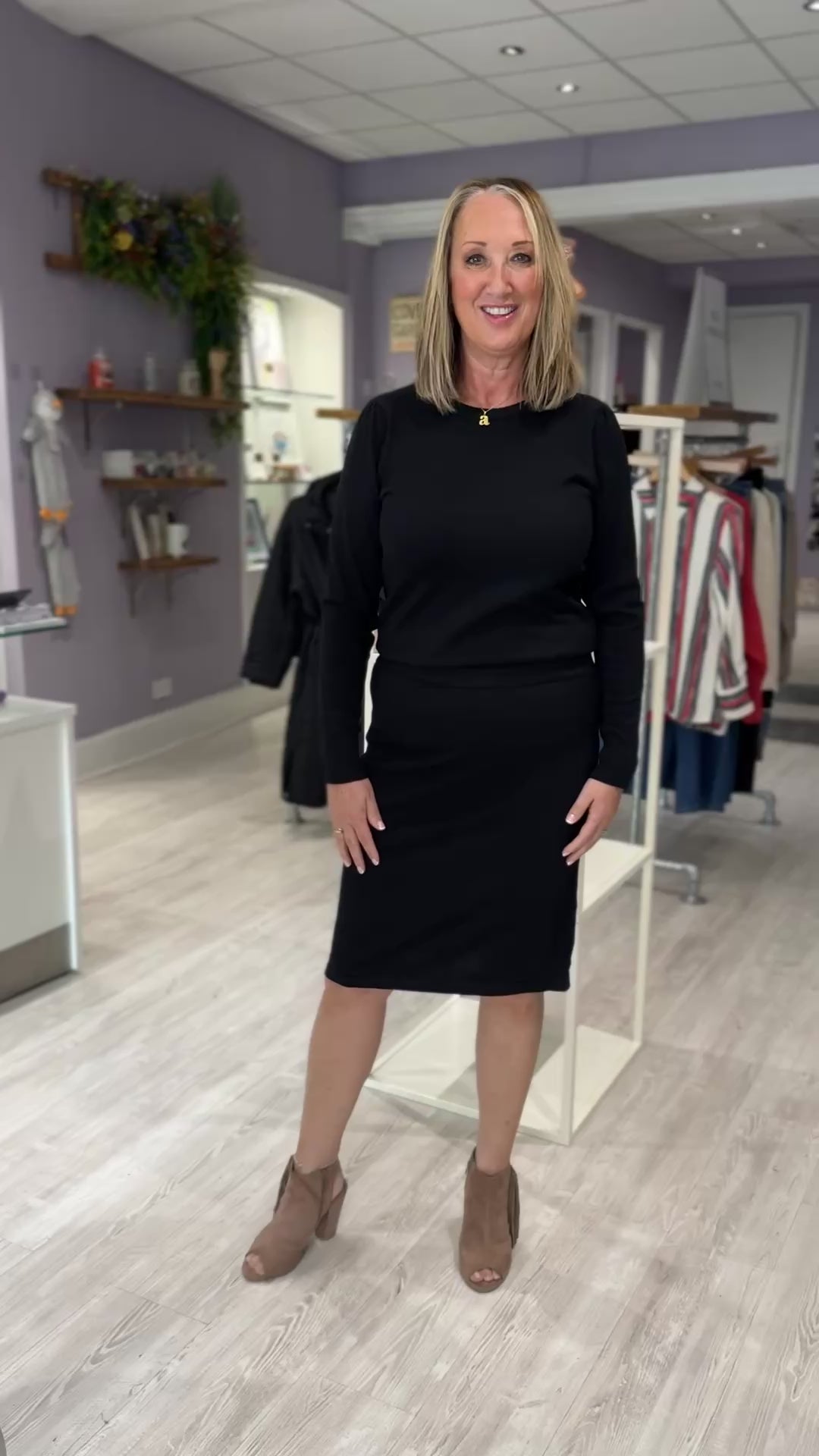Our Mila dress is a well loved best seller because of its soft touch light knit feel that looks great with trainers or boots. A go to staple for your wardrobe. Features over head fit with round neck and long sleeves.Â