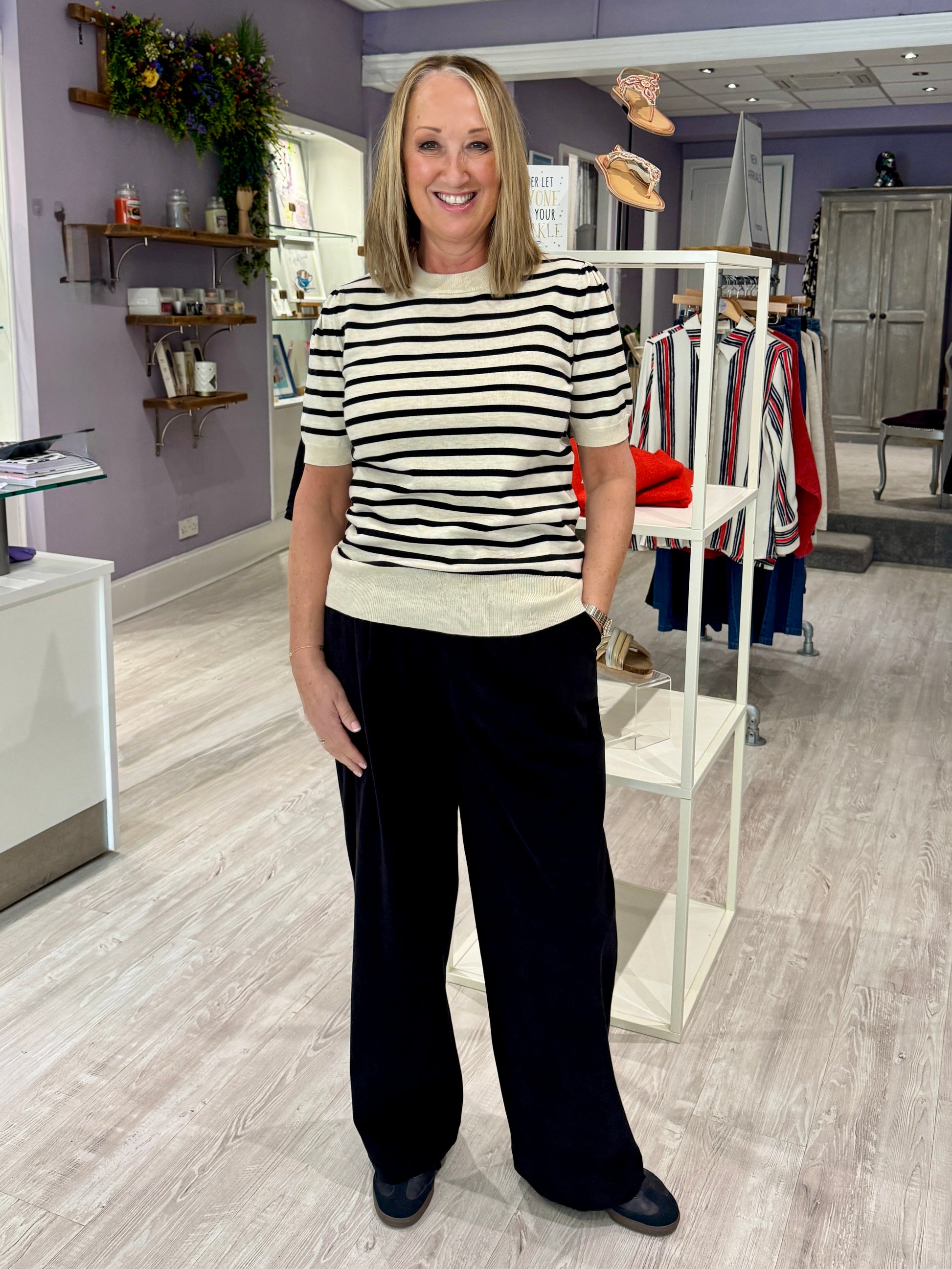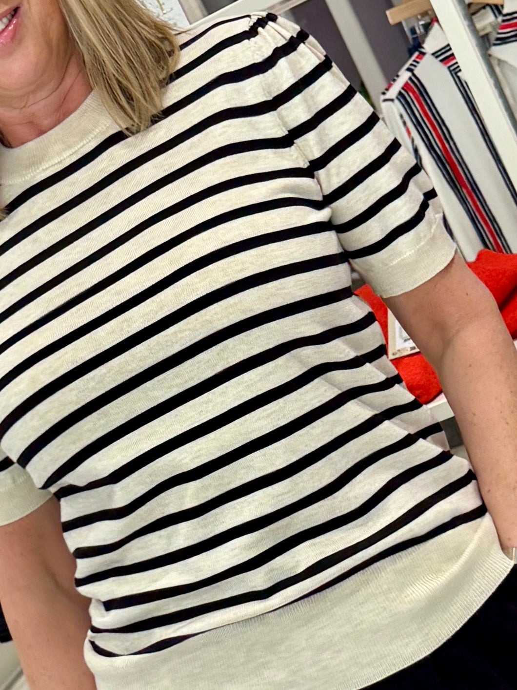 Saint Tropez Mila Striped Jumper - Brown Rice Black