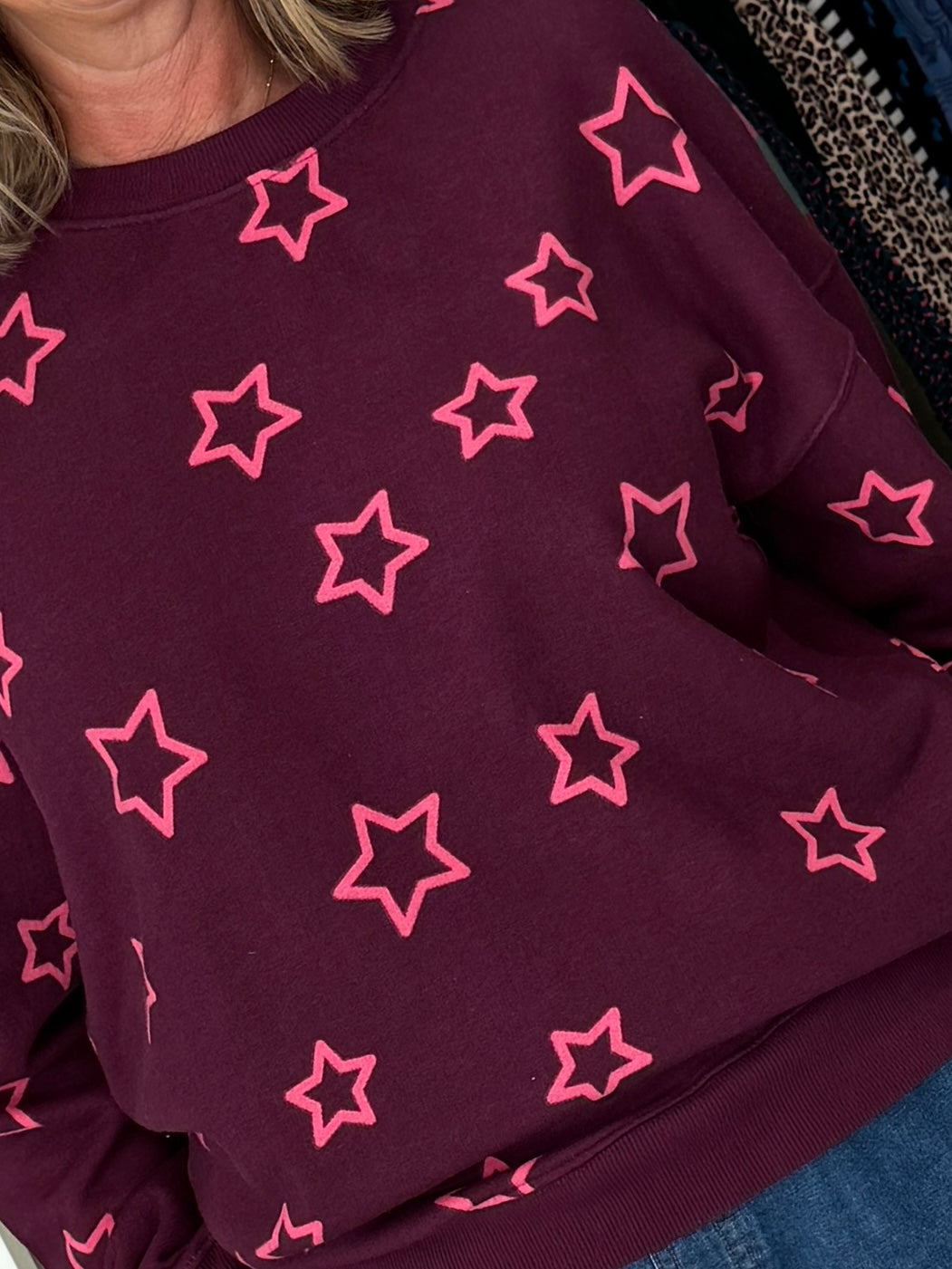 Sugarhill Brighton Eadie Relaxed Sweatshirt - Burgandy, Spaced Out Stars