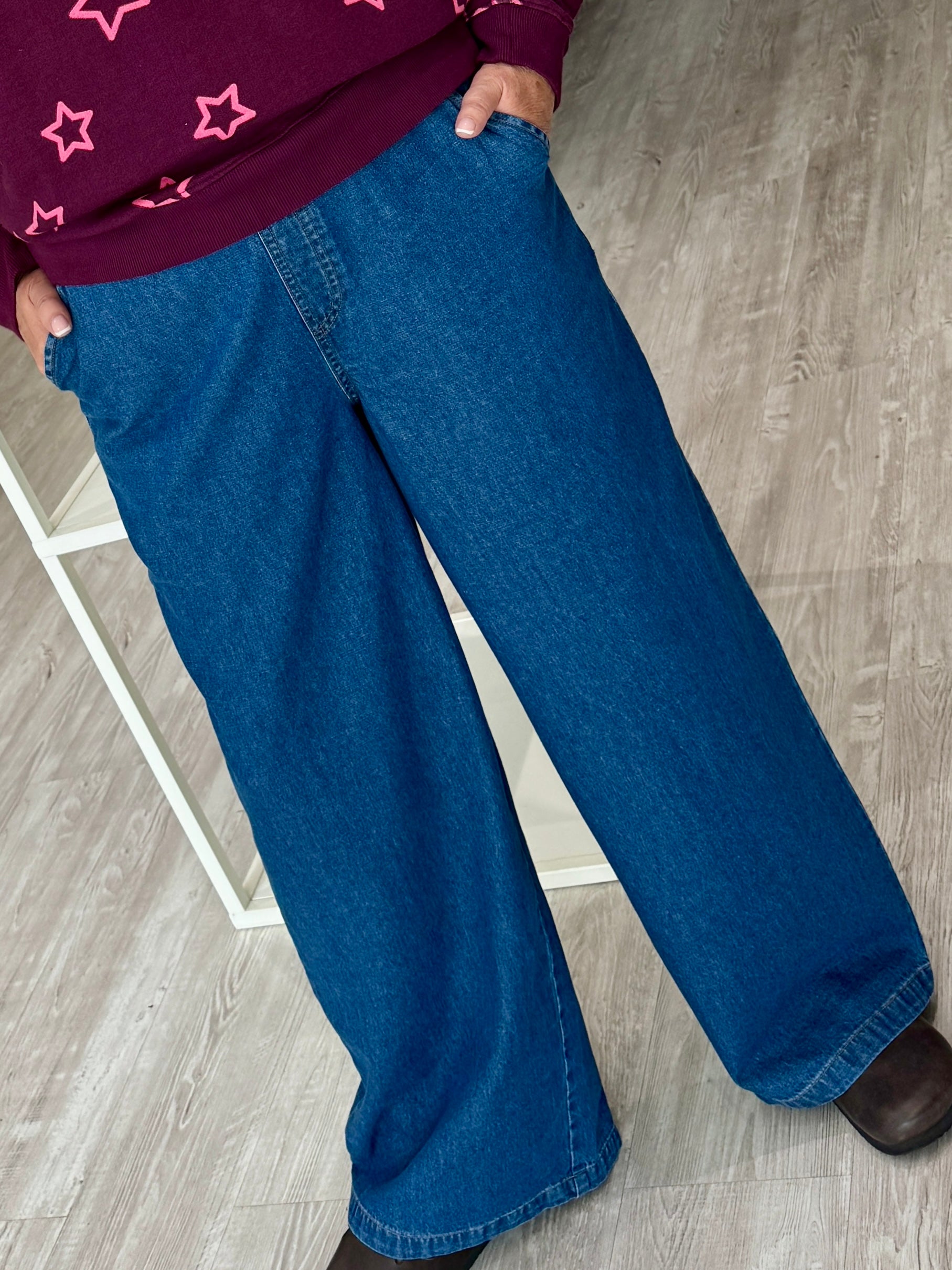 The Immy Trousers are your laid-back denim dream come true. Made from 100% cotton in a rich deep blue wash, these wide-leg jeans strike the perfect balance between cool and comfy. With a high-rise fit, soft structure, and roomy legs, they’re made for movement and everyday ease. Whether you dress them up with boots or down with trainers, the Immy Trousers bring timeless style with a modern twist.